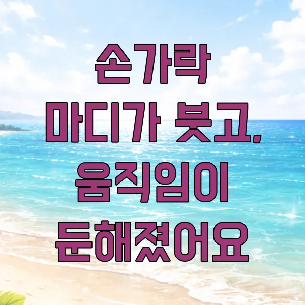 특히 손가락 마디 전체가 붓고 열감이 느껴진다면, 단순한 삐끗함과는 다른 신호일 수 있으니 주의 깊게 살펴볼 필요가 있어요. 마치 찐득한 느낌이 들면서 움직임이 둔해지는 경험, 혹시 해보신 적 있으신가요?